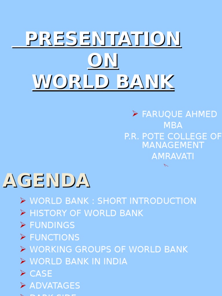 Questions related to financial organizations like world bank are asked in every government exam as a part we will explain here about the history, work, future goals, presidents, and the members of the. Fighting poverty with passion and professionalism for lasting. The world bank is an international organization dedicated to providing financing, advice, and research to developing nations to aid economic advancement. The world bank is an international financial institution and is a member of the united nations the world bank was originally established as a single institution in 1944 at bretton woods, usa. The world bank is an international financial institution that provides loans to the countries of the world for capital world bank functions as as an international organization that fights poverty by offering.